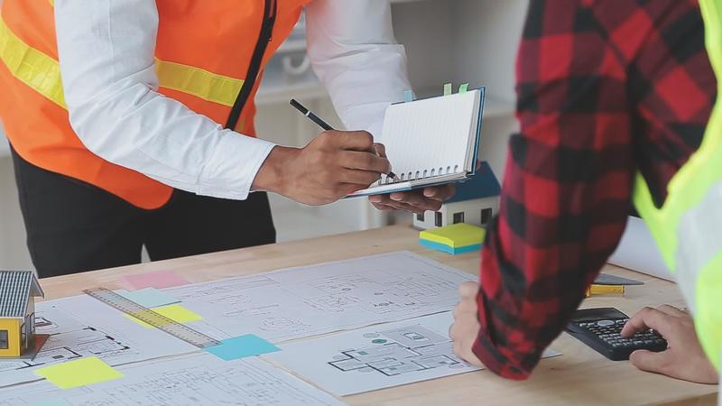Construction and structure concept of Engineer or architect meeting for project working with partner and engineering tools on model building and blueprint in working site, contract for both companies. Pro Video