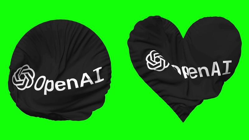 ChatGPT OpenAI Flag in Heart and Round Shape Waving Seamless Looping, Looped Waving Slow Motion Flag, Chroma Key, 3D Rendering