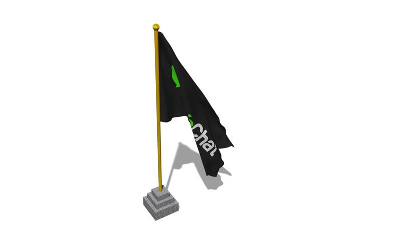 WeChat, Weixin Flag Start Flying in The Wind with Pole Base, 3D Rendering, Luma Matte Selection