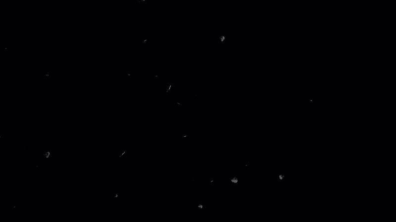 White ash or dust particles, flying and floating on air in a loop, overlay a black background with an alpha channel in this still shot. Pro Video