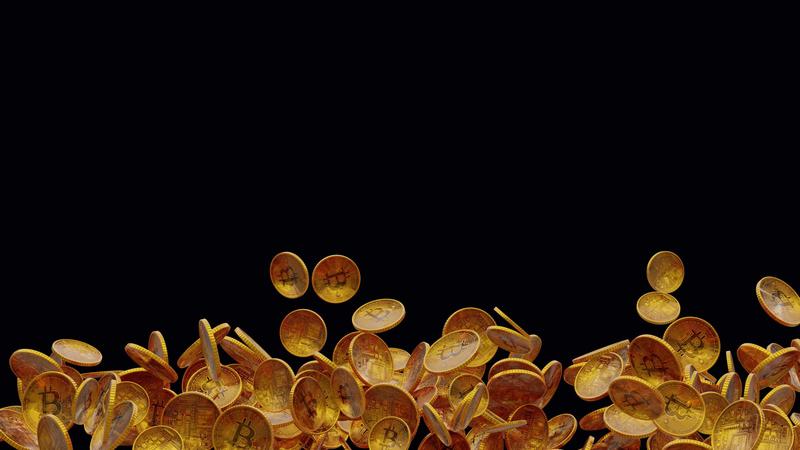 Golden bitcoin tokens growing loop in frame with alpha channel. Pro Video