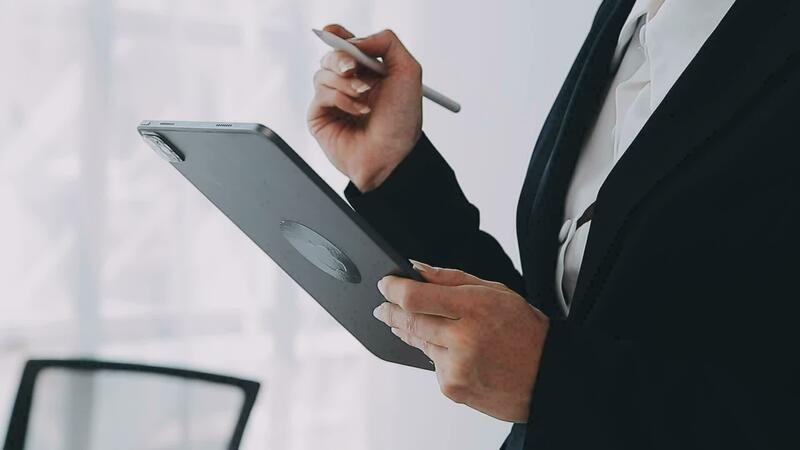 Call center agent with headset working on support hotline in modern office with copy space. Portrait of mature positive agent in conversation with customer over headset looking at camera. Free Video