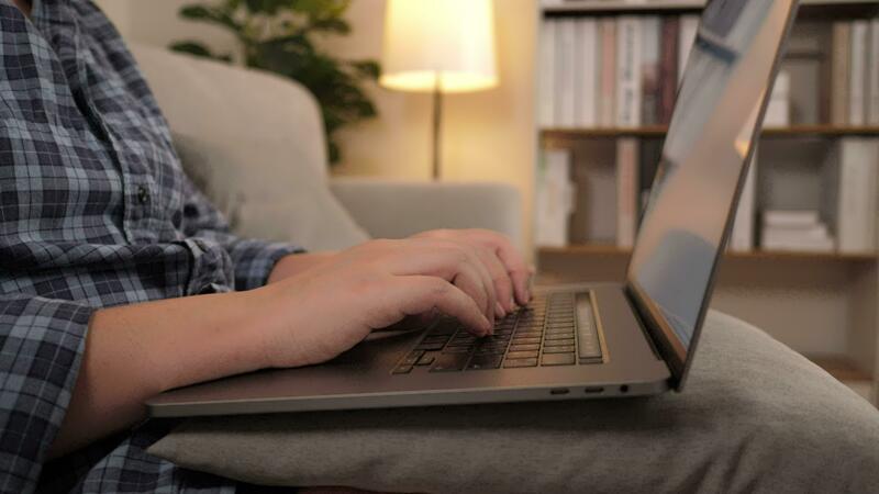 Close up hands Asian businesswoman, freelance data scientist work remotely at home coding programming on Big data mining, AI data engineering, Female typing on laptop. IT Technician. Telework concept. Pro Video