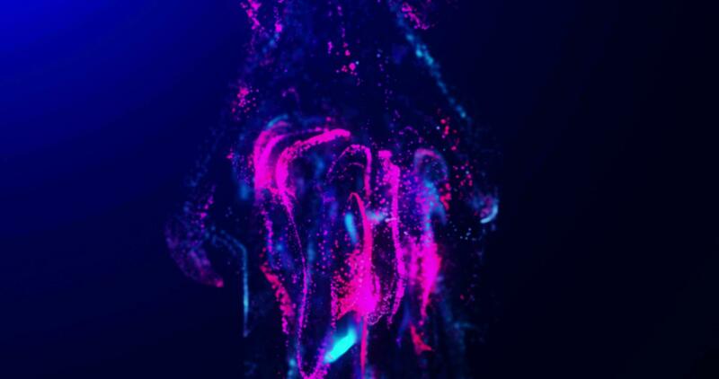 Abstract background of bright neon fluid particles, motion animation of glowing particles of bright colors, flow or cloud of rotating particles, bokeh effect, seamless loop, 4K Pro Video
