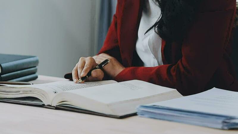 Justice and law concept.Male judge in a courtroom with the gavel, working with, computer and docking keyboard, eyeglasses, on table in morning light Free Video