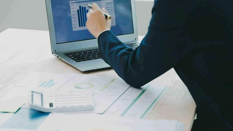 business documents on office table with smart phone and digital tablet and graph financial with social network diagram and man working in the background Free Video