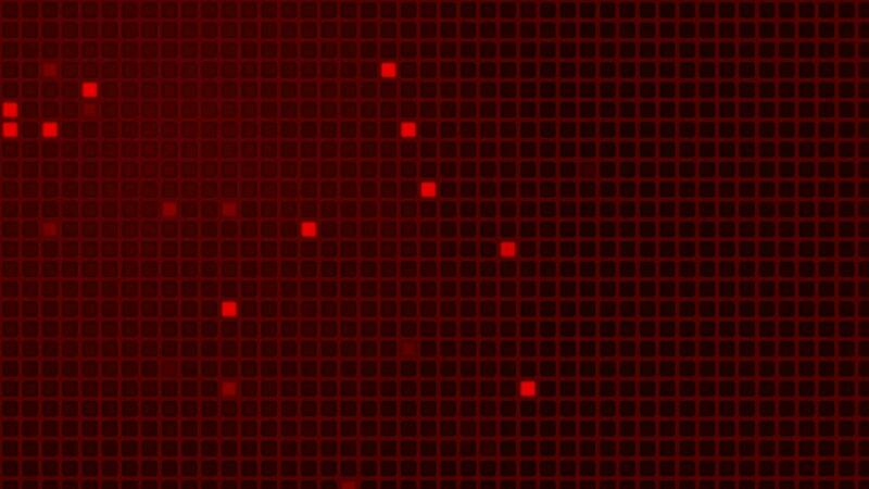 3D abstract digital technology animated red light particles on red gradient background. Free Video