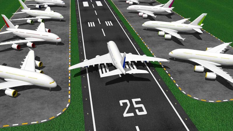 Welcome to Eritrea, Airplane Landing on Runway front of City Buildings, 3D Rendering Free Video