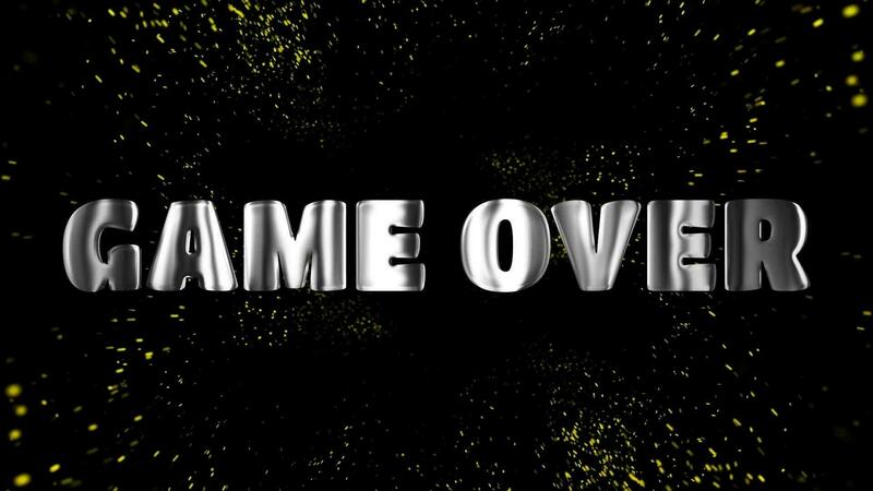 Text GAME OVER silver 3d digital technology animated on yellow particle background Free Video