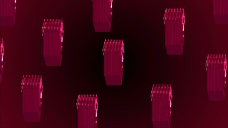 dark pink color rotating 3d hexagon with glowing wireframe of points and lines Free Video