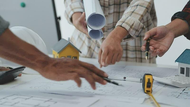 Engineer Teamwork Meeting, Drawing working on blueprint meeting for project working with partner on model building and engineering tools in working site, Construction and structure concept. Free Video