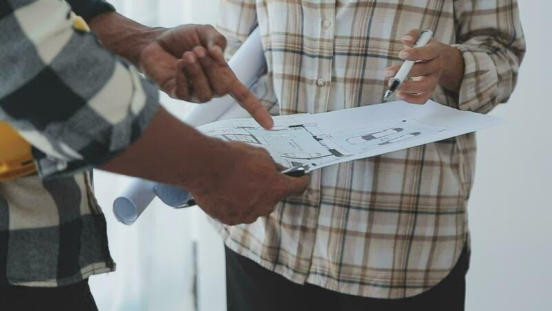 Engineer Teamwork Meeting, Drawing working on blueprint meeting for project working with partner on model building and engineering tools in working site, Construction and structure concept. Free Video