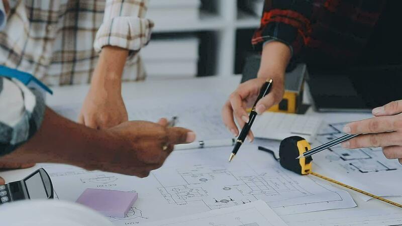 Engineer Teamwork Meeting, Drawing working on blueprint meeting for project working with partner on model building and engineering tools in working site, Construction and structure concept. Free Video