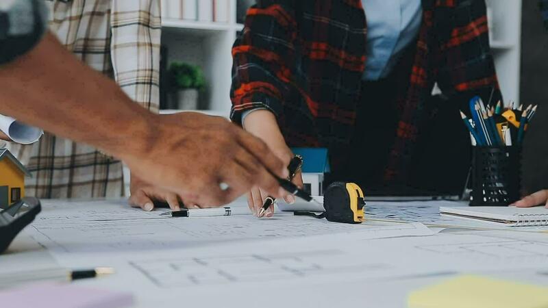 Engineer Teamwork Meeting, Drawing working on blueprint meeting for project working with partner on model building and engineering tools in working site, Construction and structure concept. Free Video