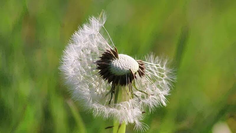 Dandelion seeds in spring on windy day as close-up macro view shows fragility of fluffy seeds in springtime to represent allergies and allergic reactions and a beautiful childhood with softness Pro Video