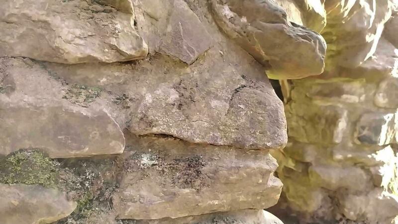Old ruins in a fairy forest in close-up view and slow motion shows medieval ruins and ancient architecture in a forest with a little creek and idyllic scenery with rough stones and uneven stonework Pro Video