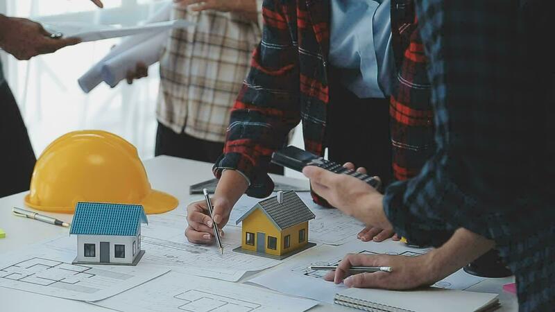 Engineer Teamwork Meeting, Drawing working on blueprint meeting for project working with partner on model building and engineering tools in working site, Construction and structure concept. Free Video