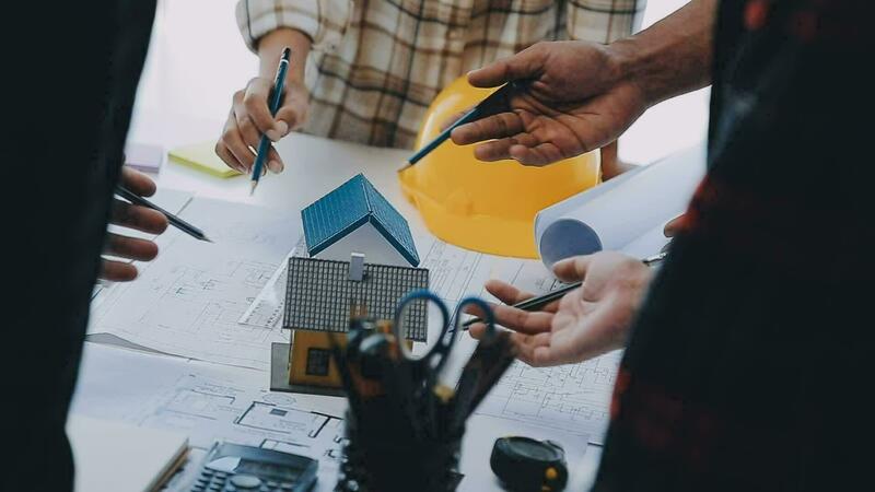 Engineer Teamwork Meeting, Drawing working on blueprint meeting for project working with partner on model building and engineering tools in working site, Construction and structure concept. Free Video