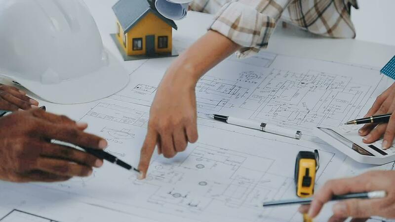 Engineer Teamwork Meeting, Drawing working on blueprint meeting for project working with partner on model building and engineering tools in working site, Construction and structure concept. Free Video