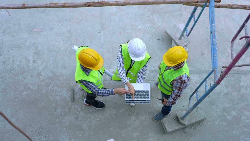 Group of engineer or architect put on a helmet for safety and look at notebook and talk with a contractor for Inspect Building factory Construction on construction site. Smart working woman concept. Free Video