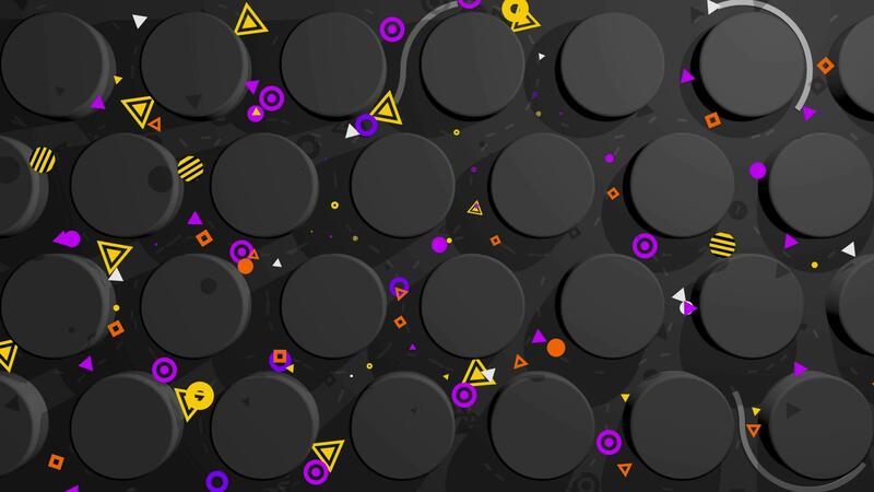 Abstract composition of gray lines, circles, triangles and yellow, orange and purple squares moving between gray circles. Loop sequence. 3d Animation Free Video