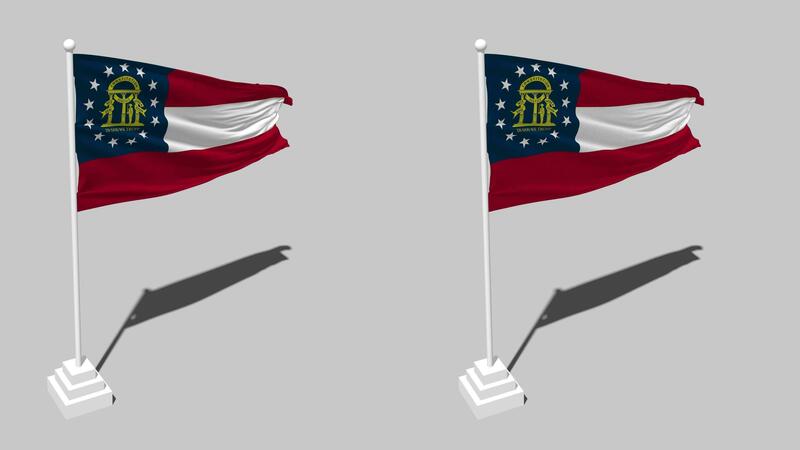 State of Georgia Flag Seamless Looped Waving with Pole Base Stand and Shadow, Isolated on Alpha Channel Black and White Matte, Plain and Bump Texture Cloth Variations, 3D Rendering Free Video