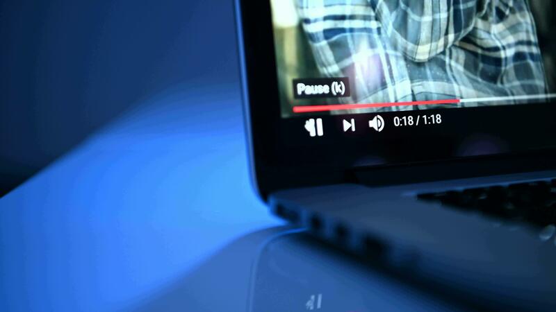 Running Film in Web Based Video Player. Laptop Computer Closeup. Video Creation Theme. Pro Video