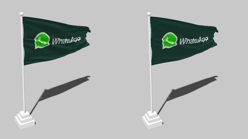 WhatsApp Flag Seamless Looped Waving with Pole Base Stand and Shadow, Isolated on Alpha Channel Black and White Matte, Plain and Bump Texture Cloth Variations, 3D Rendering