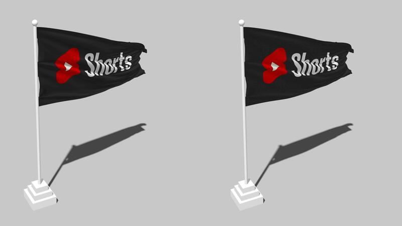 YouTube Shorts Flag Seamless Looped Waving with Pole Base Stand and Shadow, Isolated on Alpha Channel Black and White Matte, Plain and Bump Texture Cloth Variations, 3D Rendering