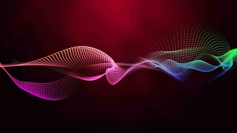 3D abstract digital technology animated multicolored light particles on red background. Free Video