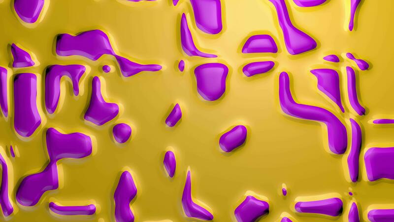 Close up of drops of purple liquid moving randomly on a shiny yellow surface. Loop sequence. 3D Animation Pro Video