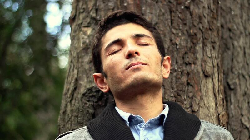 Tired man leaning against tree and close eyes, man trying to forget troubles under tree, selective focus Free Video