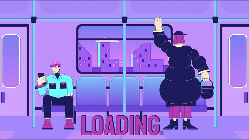 Commuter rail loader animation. Public transport. Rail travel. Train people traveling. Flash message 4K video. Chill lofi colour loading animation with alpha channel transparency for UI, UX web design Pro Video