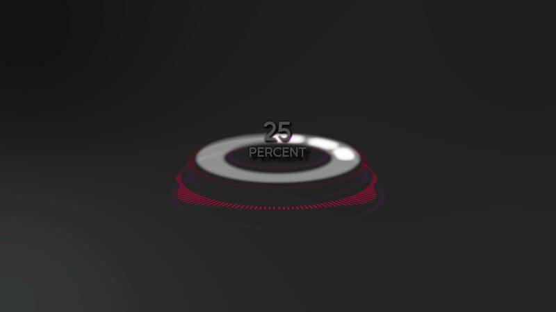 Audio spectrum circular or radial 3d with percent countdown in the center on grey background. Audio waveform with frequency bands. Visualization of music display Pro Video
