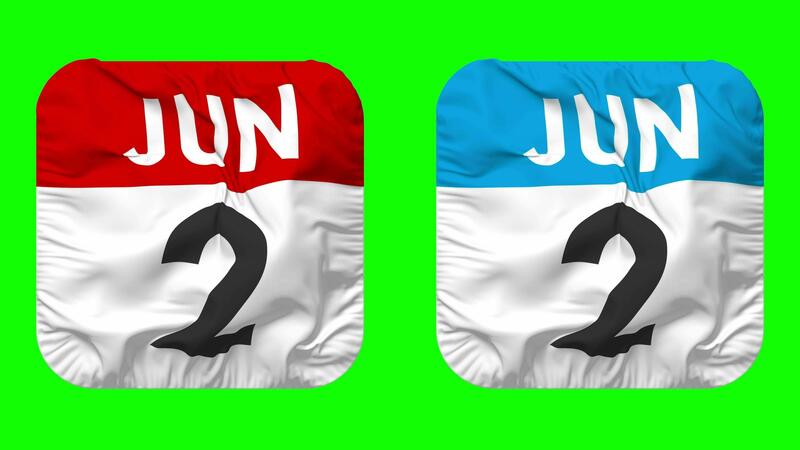 Second, 2nd June Date Calendar Seamless Looping Squire Cloth Icon, Looped Plain Fabric Texture Waving Slow Motion, 3D Rendering, Green Screen, Alpha Matte Free Video