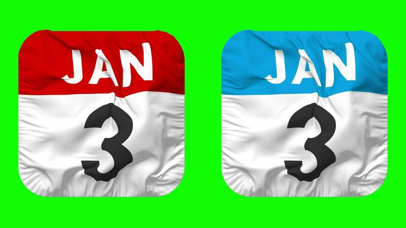 Third, 3rd January Date Calendar Seamless Looping Squire Cloth Icon, Looped Plain Fabric Texture Waving Slow Motion, 3D Rendering, Green Screen, Alpha Matte Free Video