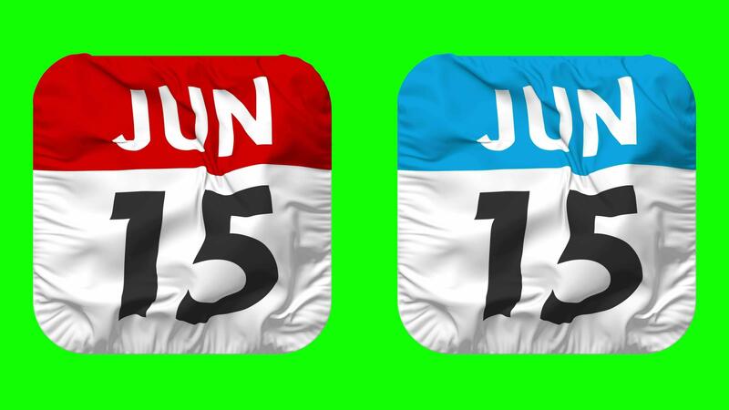 Fifteenth, 15th June Date Calendar Seamless Looping Squire Cloth Icon, Looped Plain Fabric Texture Waving Slow Motion, 3D Rendering, Green Screen, Alpha Matte Free Video