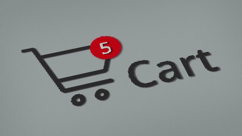 Adding items to a shopping cart icon with count numbers on the device screen. Add items online on shopping web page. Online shopping concept Pro Video