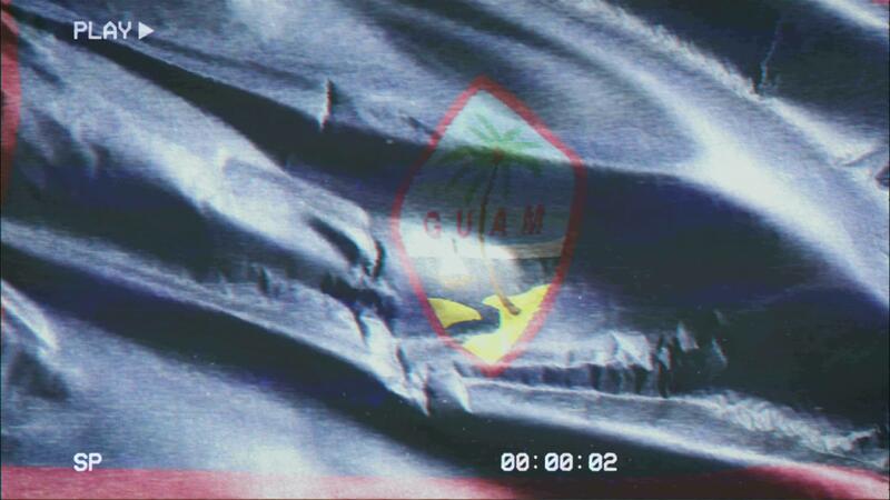 VHS video casette record Guam flag waving on the wind. Glitch noise with time counter recording Guamese banner swaying on the breeze. Seamless loop. Pro Video