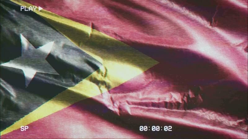 VHS video casette record East Timor flag waving on the wind. Glitch noise with time counter recording banner swaying on the breeze. Seamless loop. Pro Video