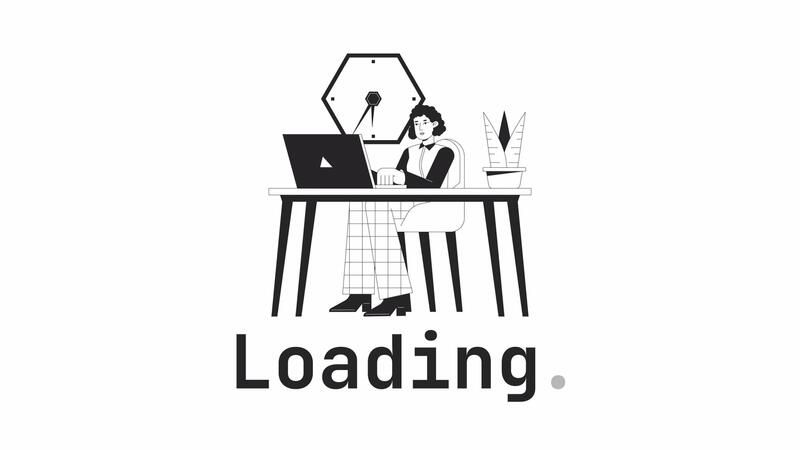 Office worker bw loader animation. Office woman typing on keyboard at workplace. Flash message 4K video. Isolated monochrome loading animation, alpha channel transparency for UI, UX web design Pro Video