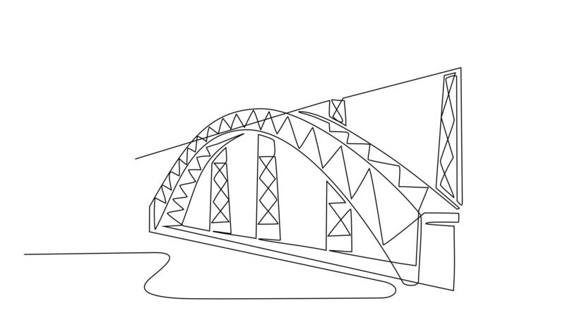 Animated self drawing of single continuous line draw for bridge structure. architechtural design concept for bridge and building. Building icon animation. Full length one line animation. Free Video