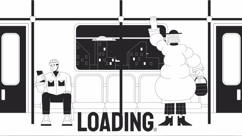 Commuter rail bw loader animation. Public transport. Train people traveling. Flash message 4K video. Chill lofi isolated monochrome loading animation, alpha channel transparency for UI, UX web design Pro Video