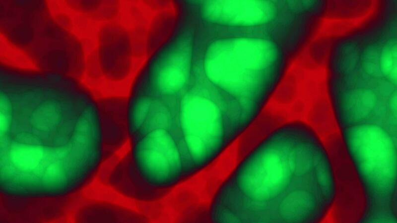 Red and green fractal noise turbulence animation background. 2D computer rendering motion graphic Pro Video