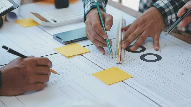 Construction and structure concept of Engineer or architect meeting for project working with partner and engineering tools on model building and blueprint in working site, contract for both companies. Free Video