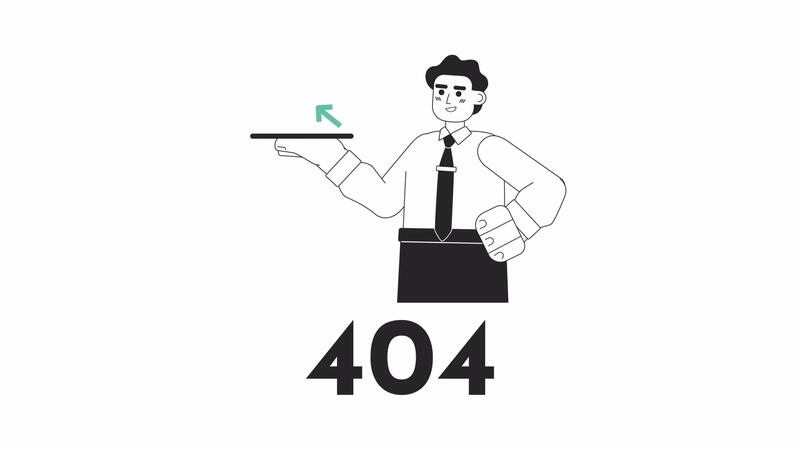 Financial advisor with rising arrow bw error 404 animation. Stock trading graph error message gif, motion graphic. Insurance agent animated character outline 4K video isolated on white background Pro Video