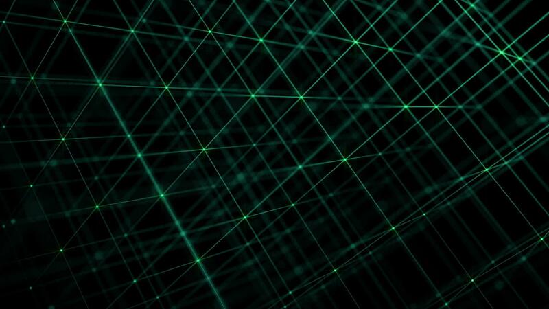 A glowing green cubic grid of digital data nodes and flashing information streams. Full HD and looping computer network connections concept technology background. Pro Video