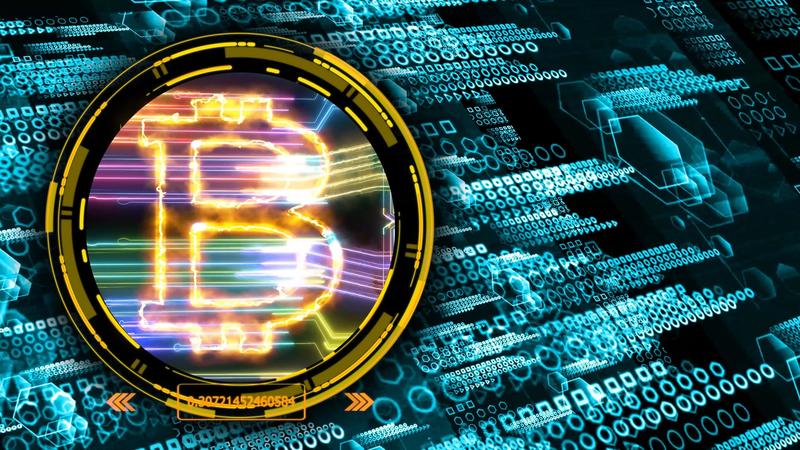 Bitcoin algorithm quantum computer futuristic technology digital layer dimension holographic process and analysis for big data and abstract orange zone polygon background Free Video