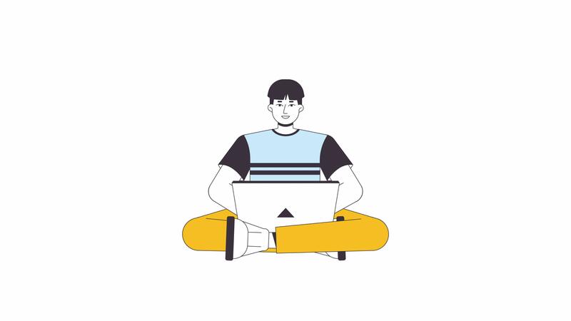 Programmer working line 2D character animation. Tech writing. Online study flat color cartoon 4K video, alpha channel. Gadget man. It developer coding on laptop animated person on white background Pro Video