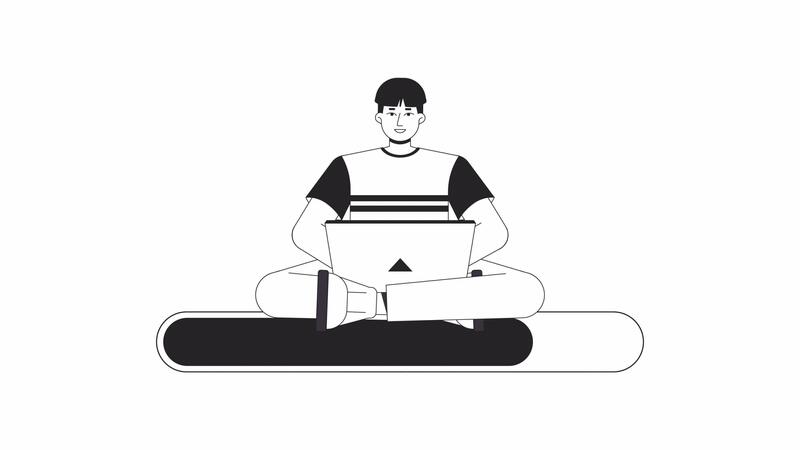 Programmer working bw loading bar animation. It developer coding on laptop outline 2D cartoon character 4K video loading motion graphic. Tech writing animated process indicator gif isolated on white Pro Video